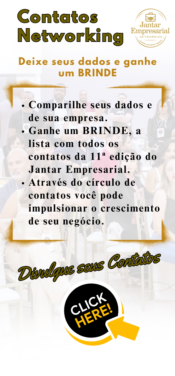 • Ao participar do Jantar Empresarial, você terá a chance de identificar potenciais parceiros de negócios e oportunidades de colaboração. Seja para expandir sua base de clientes, explorar novos mercados ou buscar investimentos, o evento oferece um ambiente propício para estabelecer conexões estratégicas e fechar acordos vantajosos.